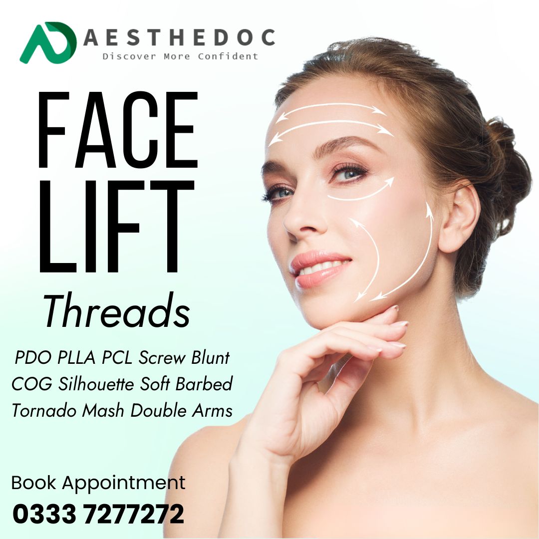 At Aesthedoc Clinic Islamabad, the procedure uses high-quality FDA-approved threads such as PDO (Polydioxanone), PLLA (Poly-L-Lactic Acid), or PCL (Polycaprolactone). Each type is chosen according to your skin type, age, and degree of laxity.